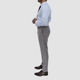 Slim Fitting Grey Suit Trouser / Double Pockets with Button Closer on the Back / Button and Double Hook Fastening at the Front / Side Pockets and Six Belt Loops