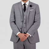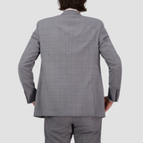 A Silver Pure Wool Men's Suit / Single Breasted / Two Button Front / Window Pane Check Design / Great for Business, Special Occasions or Events / Tailored Fit / Euro Finish / LIMITED STOCK