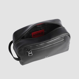 Elegant Washbag Bag by Hugo Boss / One Zip Front Pocket / Top Zipper Closure / Side Handle / Exterior HUGO Logo / Interior HUGO Logo / One Inner Slip Pocket