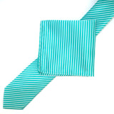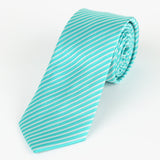 - An aqua and white diagonal stripe men's tie in a woven microfibre blend