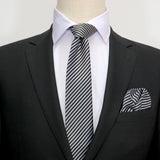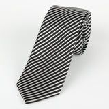 - A black and white diagonal stripe men's tie in a woven microfibre blend