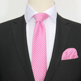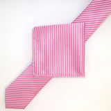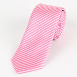 - A pink and white diagonal mini stripe men's tie in a woven microfiber blend