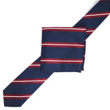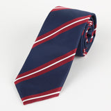 James Adelin Luxury Neck Tie in White, Navy and Burgundy Regimental Stripes