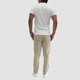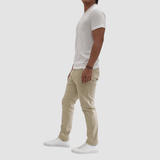 Comfortable Stretch Cotton Chino Pant in Beige Sand / A Great Smart Casual Mens Trouser / Slim Fit / Side Pockets / Button and Zip Closure / Welt Pockets at the Back / 6 Belt Loop