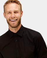 Point Collar / Convertible Mitred Cuffs with Adjustable Buttons / Classic Fit / Placket with Branded Buttons / Everyday Mens Shirt in Black