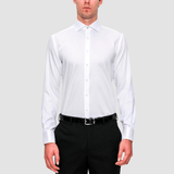 A White Mens Shirt by Cambridge Perfect for Formal Events, Weddings, Evening, Black Tie Occasions and Work / Classic Fit / Semi Spread Collar / 8 Button Front / French Cuff / Split Back Yoke / Side Gussets