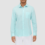 City Club Resort Mens Linen Shirt in Aqua Blue