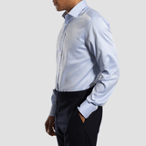 Hardy Amies Contemporary Fit Shirt / Classic Fit / Light Blue Textured Fabric / Standard Collar / Single Cuff / A Great All Rounder Mens Shirt for Business of Casual Occasions