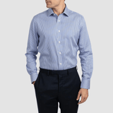 Hardy Amies Classic Fit Shirt / Bengal Striped Blue and White Design / A Soft Comfortable Cotton Twill Fabric / Standard Collar / Single Cuff / A Classic and Versatile Mens Shirt for Business or Smart Casual Occasions