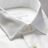 Hardy Amies Slim Fit Shirt / White Pure Cotton Fabric / Herringbone Weave Pattern / Standard Collar / Single Cuff / Suitable for All Occasions from Business to Formal