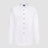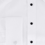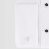 A Tapered Fit Formal Shirt by Jenson / Classic Collar / French Cuff / Contrast Black Buttons with Silver Casing / Textured Finish / Perfect for Formal Events, Weddings, Evening, Black Tie Occasions and Work