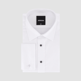 Jenson Mens Tapered Fit Malbec Textured French Cuff Dinner Shirt in White Pure Cotton