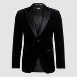 Hugo Boss Slim Fit Hutson Tuxedo Jacket in Black Pure Cotton Velvet