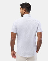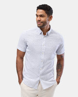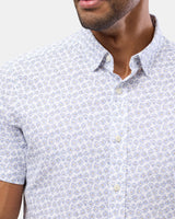 CONCEALED BUTTON-DOWN COLLAR FIXED FOLDED SHORT SLEEVE CUFFS SMALL GEO FLORAL PRINT RELAXED SLIM FIT |