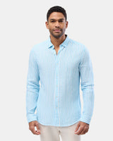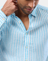 Brooksfield mens casual linen shirt in blue stripe