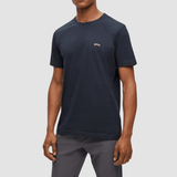 Boss Mens Classic Fit Cotton T-Shirt with Curved Logo in Dark Blue
