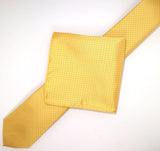 • A gold and white mini spot men's tie in a woven microfibre blend