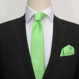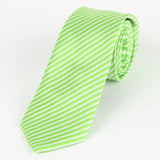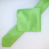 - A lime green and white diagonal mini stripe men's tie in a woven microfibre blend