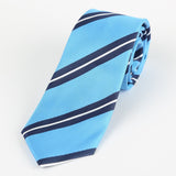 - A turquoise and white regimental stripe men's tie in a woven microfibre blend