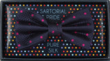 James Adelin Luxury Pure Silk Polka Dot Bow Tie in Navy/Orange Square Weave