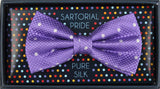 - A purple and white silk bow tie is perfect for finishing your formal or wedding look.