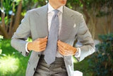 When the Brothers at OTAA create nautical designs, they like to immerse themselves in oceanic environments. The Smoke Blue Slub Linen Tie was designed in the middle of the Atlantic in a haphazard canoe. "Perfect," the brothers professed as they painted their final brushstroke. The canoe capsized and they were forced to ride dolphins to shore- but that's ok because this Smoke Blue Slub Linen Necktie is a knock-out!