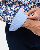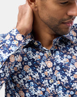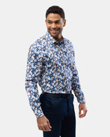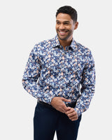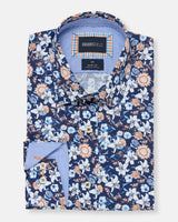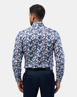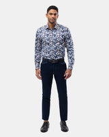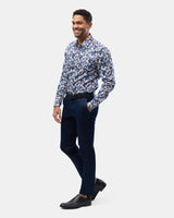 Brooksfield Mens Luxe Print Slim Fit Shirt in Navy