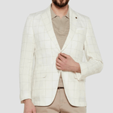 Boss Slim Fit Huston Blazer in White Check Linen Wool Blend