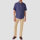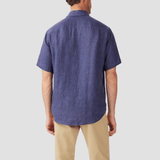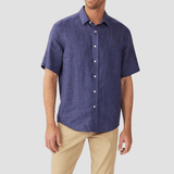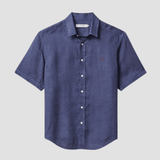 R.M. Williams Mens Newman Linen Short Sleeve Shirt in Navy - In Store Only