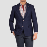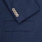 Mens Tailored Fit Sports Jacket / Notch Lapel / Two Button Front  / Two Flap Pockets / Chest Pocket / Navy With Specks of Blue Hues / Textured Blend of Wool and Linen / A Wardrobe Essential