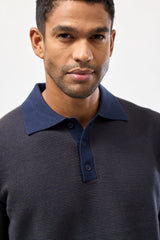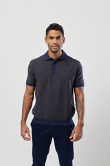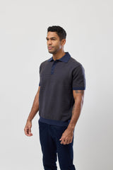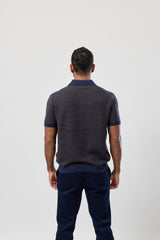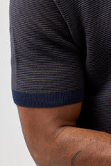 Brooksfield Short Sleeve Knitted Polo in Navy and Taupe