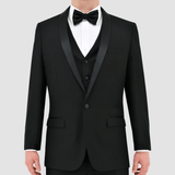Slim Fit Mens Tuxedo Suit / Also Available in Long and Regular Jacket Sleeve Lengths / Satin Shawl Lapel / Satin Trim Jet Pockets / Twin Rear Vents / Perfect Affordable Wedding and Events Suit / Black Tie Suit