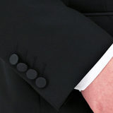 The Christian Brookes Slim Fit Shawl Evening Suit in Black Short is tailored specifically for shorter frames, offering a sophisticated slim fit with an elegant shawl collar.
