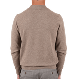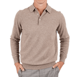 Hardy Amies Knit Polo Oak Marle Merino Wool
