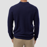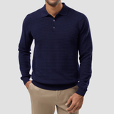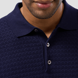 Long Sleeve Knitted Polo / Textured Grid Design / Button Collar / Relaxed Slim Fit / The Perfect Knit For a Cool Day / Wear With Jeans, Chinos or Paired With Your Suit For a Contemporary Business Look