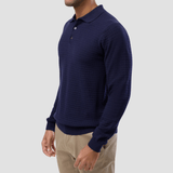 Brooksfield Mens Long Sleeve Knit Polo in Navy Pure Cotton