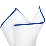 James Adelin Luxury Royal Blue Coloured Border Pure Linen Weave Pocket Square