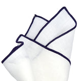 James Adelin Luxury Dark Purple Coloured Border Pure Linen Pocket Square