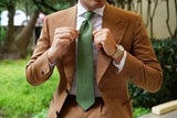 Great explorers wear green, which is why this Hunter Green Slub Linen Tie will put a sense of adventure in your tailoring. This textured green number is perfect for taking on hikes and camouflaging in dangerous situations. For example, when you're at work and you need to hide from your boss, this Hunter Green Slub Linen Necktie will help you camouflage into that ugly green wall behind your desk. It's a life-saver.