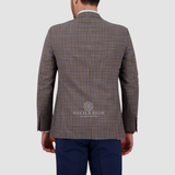 Beige Wool Checked Finish / Slim Fit Mens Sports Jacket / Notch Lapel / Double Button / Chest Pocket Great Business or Events Suit Jacket / Standout Event Jacket / Wear With Mens Chino Pant