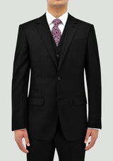 Classic Fit / Super 100s Super Fine Australian Wool / 2 Button Closure / 4 Button Faux Cuff / Slightly Tapered Fit / Classic Fit Mens Black Suit