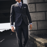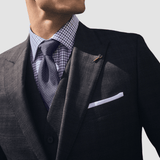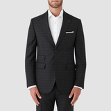 Tailored Fit / Half Canvas Front / Peak Lapel / 2 Button Front / Natural Shoulder / Jet Pockets / Ticket Pocket / Side Vents / Fully Lined / Charcoal Tonal Grid Check / Natural Wool Fibres / Soft Hand Feel