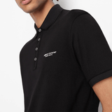 Classic Fit Mens Polo / Black Cotton / Small Chest Logo in Contrast Colour / Great Casual Wear / Four Buttons at Neck