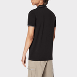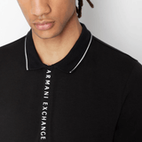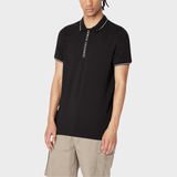 Slim Fit Mens Polo / Black Stretch Cotton / Printed Brand on Placket / Zip Collar Design / Short Sleeve