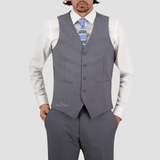Slim Fit Suit Grey Vest / Four Button Front / Adjustable Back Buckle / Angle Fabric Pockets / Pair with the David Suit by Bruton Menswear