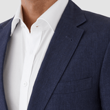 A Deep Sea Navy Linen Sports Jacket / Timeless Design / Natural Shoulder / Notch Lapel / 2 Button Front / Straight Flap Pockets / Side Vents / Fully Lined