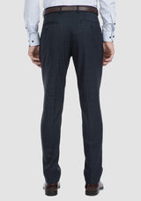Gibson slim fit caper mens suit trouser in navy check pure wool