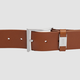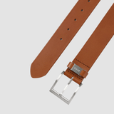 Hugo Boss Connio Mens Leather Belt with Branded Metal Trim in Medium Brown