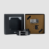 Hugo Boss Reversible Belt / 4 Looks in 1 / Black or Brown / Plaque or Pin Buckle / Engraved Logo on Closure / Brushed and Polished Gunmetal Hardware / Width 3.5cm