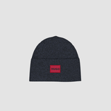 Navy Blue Mens Beanie / Knitted Super Soft Yarn / Uniquely Blended with Wool by HUGO / Trimmed With a Logo Label in Signature Red / Partially Made from Recycled Wool / A Great Mens Accessory for Winter